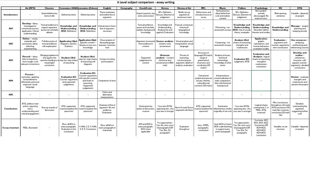 First, it compares assessment objective guidance across different subjects — contributed by brilliant teachers from each discipline. It’s a side-by-side view of what “analysis,” “evaluation” and “application” actually mean in each one. Thank you so much to those who contributed.